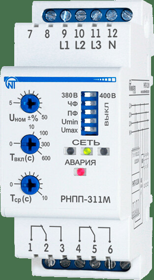 РНПП-311М, Трехфазное реле напряжения и контроля фаз предназначено: